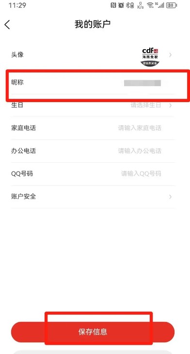最后修改昵称,点击【保存信息】即可