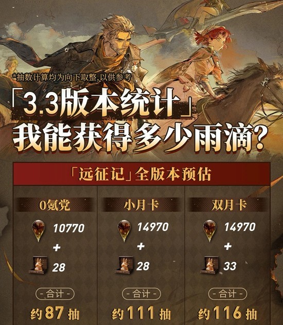 零氪党可通过活动累计获得 87抽,小月卡(咆哮的一月)玩家约 111抽,大小月卡(含吼吼点唱机)玩家最高 116抽。