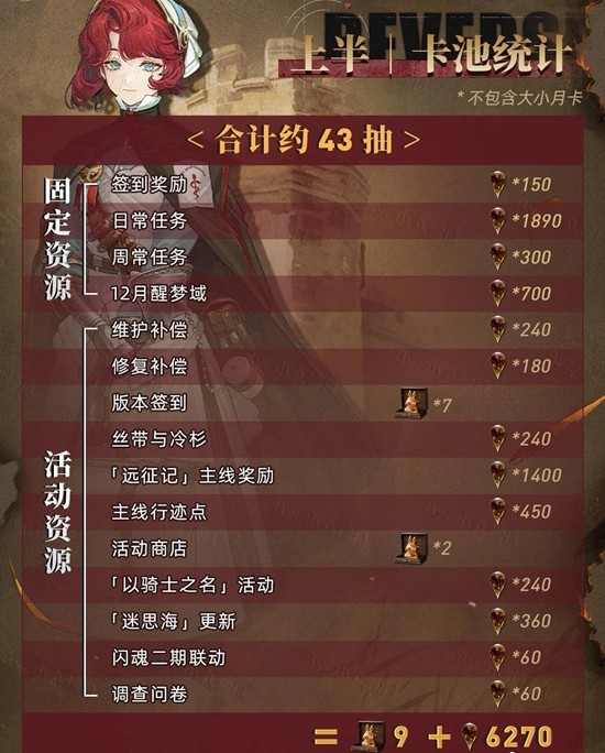 全版本抽卡资源统计