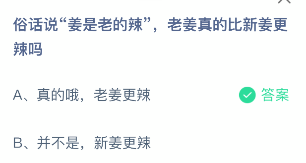 以上就是俗话说“姜是老的辣”,老姜真的比新姜更辣吗,支付宝蚂蚁庄园2025年12月30日答案最新,更多精彩内容,请点击关注0405手游网更新!