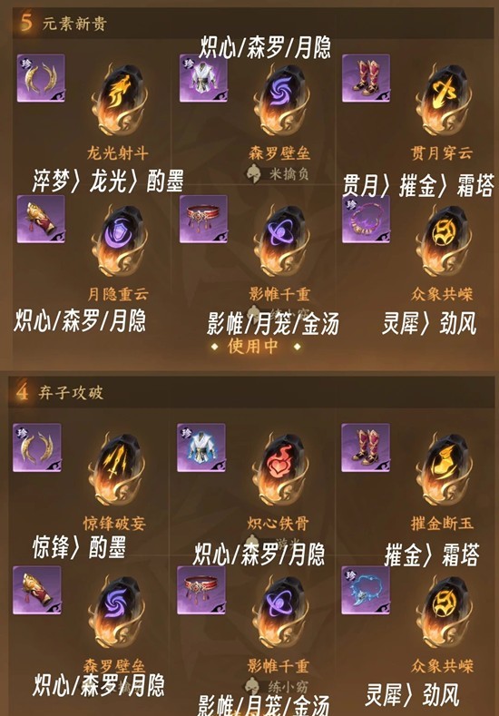 优先3金3火1木,需补充1木,词条占比可按主词条收益面板,词条收益优先原则,鸣镝+鸣沙决+昆吾优先级优先,剩下凑齐元素即可