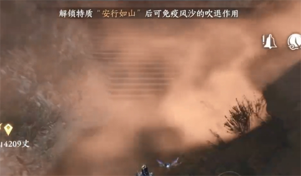 2、首先要去地图的(1707,1615),解锁大宝箱获得【安行如山】特质可以抵御风沙,不然遇到风沙天气寸步难行