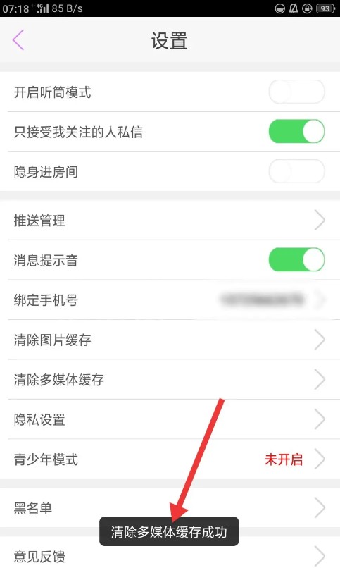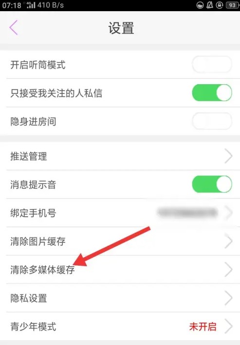 进入到设置界面后,再点击清除多媒体缓存选项。