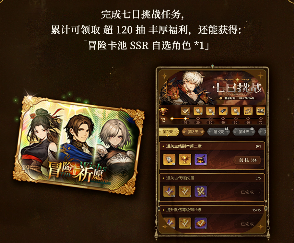 限定池子30抽保底必出SSR,抽到人物送武器,200抽1井(10/50/100一共送20抽),始源卡池持续2周