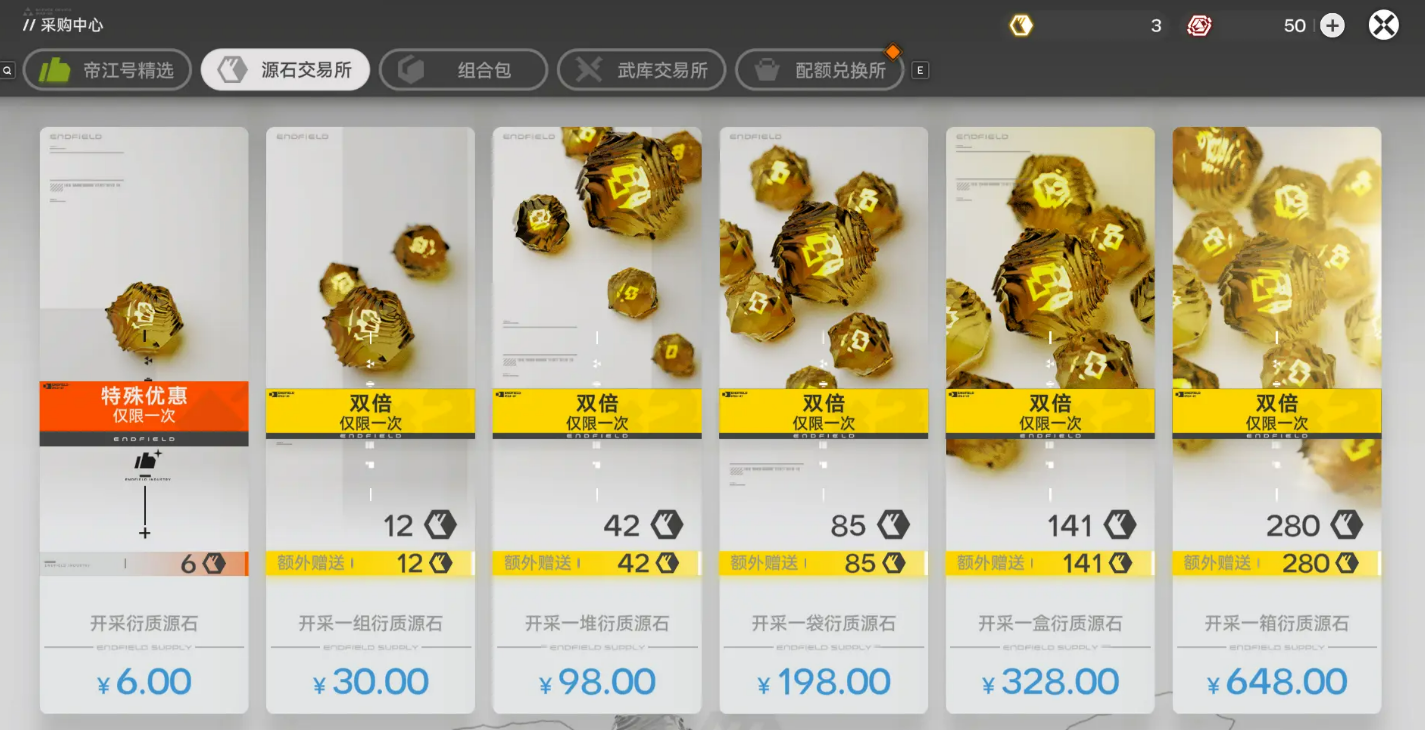 最优解方案为组合式轻度投入:优先购入3个月卡(每月90元)与高级通行证(68元)。月卡每日提供固定源石锭,通行证解锁多层级任务奖励,二者协同形成持续性资源供给。轻度玩家可在该基础上追加150元档位礼包,使总投入精确控制在300元阈值内;中度玩家建议上限设为3000元,因超出此金额后,公测阶段通过直充+25%加成所获资源总量将反超三测返还收益。