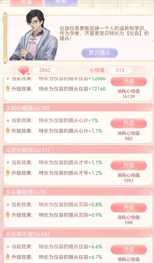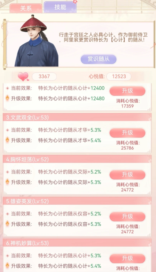 1~6技能随便点,赏识随从中有我主力培养的容芝、秦允贤、茂茂,他们还有其他技能,所以3~6都可以点