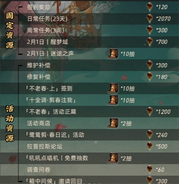 重返未来1999游戏3.4 新春版本「不老春」于1月20日开启,开启后也会上新很多的福利活动,玩家可以累积回去雨滴和兔子,积攒抽数来抽取想要的英雄,以下是抽数的汇总分享。