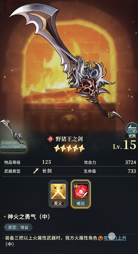 武器配置是魔武加护体系的关键支点。首选武器为野猪王之剑,其被动效果可显著提升全队火属性爆发伤害,基础属性亦属当前版本顶尖水平,建议优先装配于索菲亚。其余角色暂无严格专武需求,可统一选用四星品质的命运系列武器,兼顾基础属性与泛用性,适配全队角色。