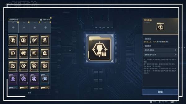 武器插件:是给武器叠加伤害属性,总共有四个插件,每个插件选择的方向不同,不同的插件提供不同的效果。