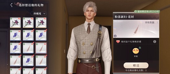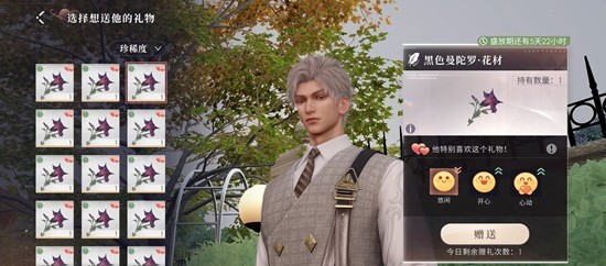 送男主花可以获得成就和朋友圈,另外也会让他心情变好。