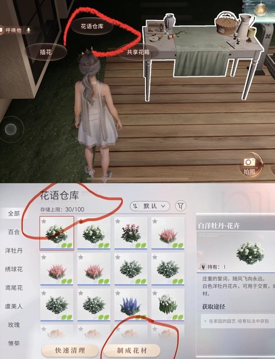 由于是连根拔起,也可以种回花坛。如果怕花材过期浪费可以选择花卉,在仓库可选择转换(花材),就不会浪费了。