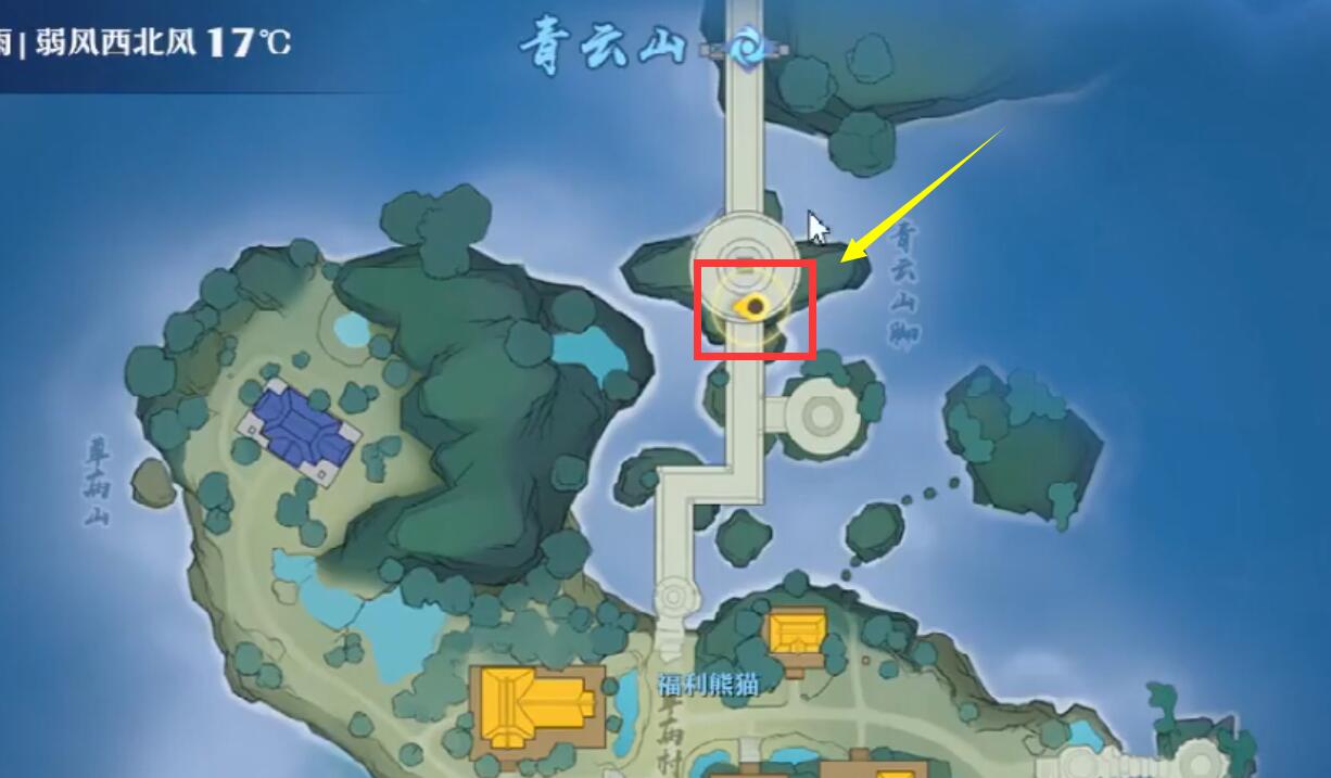 1、打开游戏,剑碑在青云山的圆盘位置;