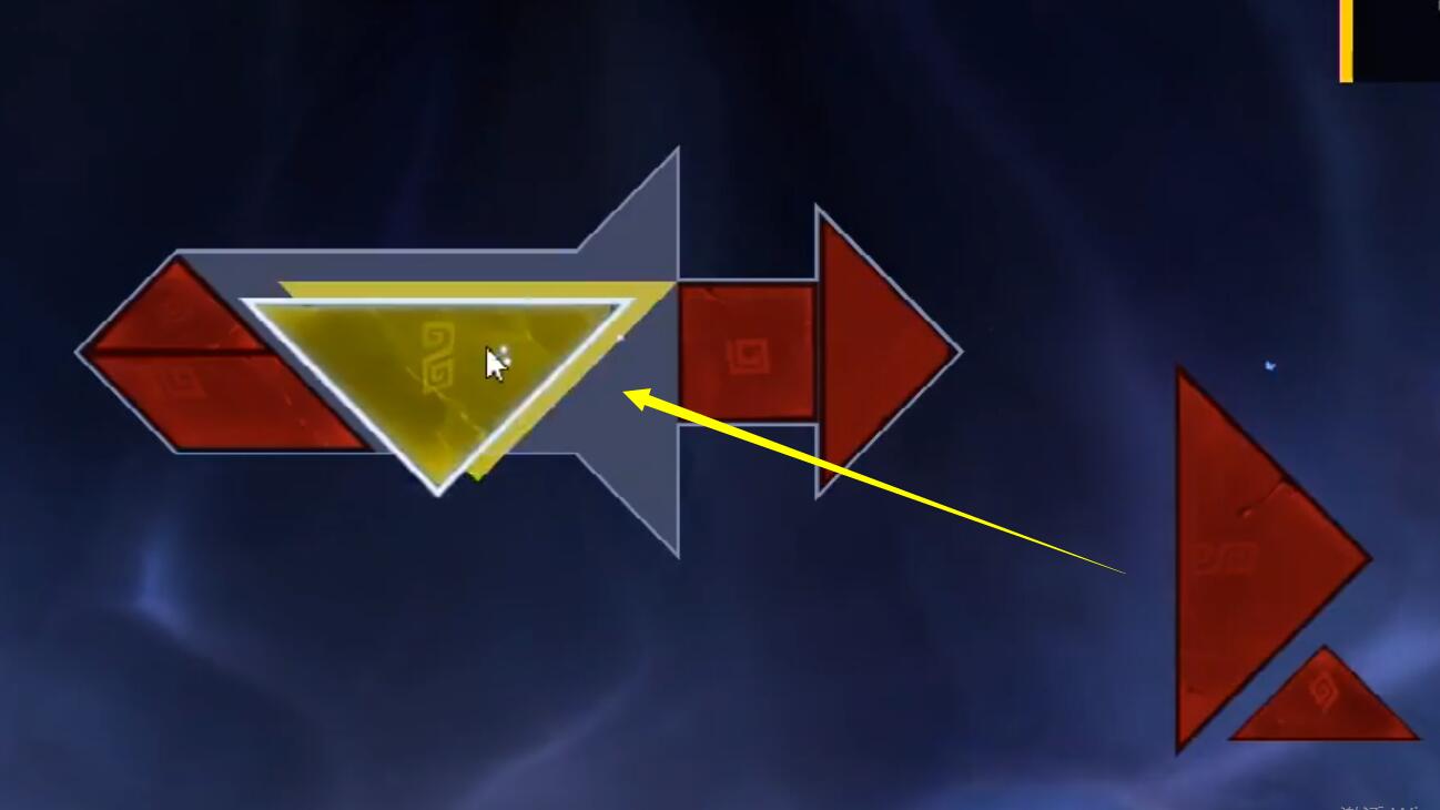 3、然后就是拼接七巧板,把右边三角形的移到中间;