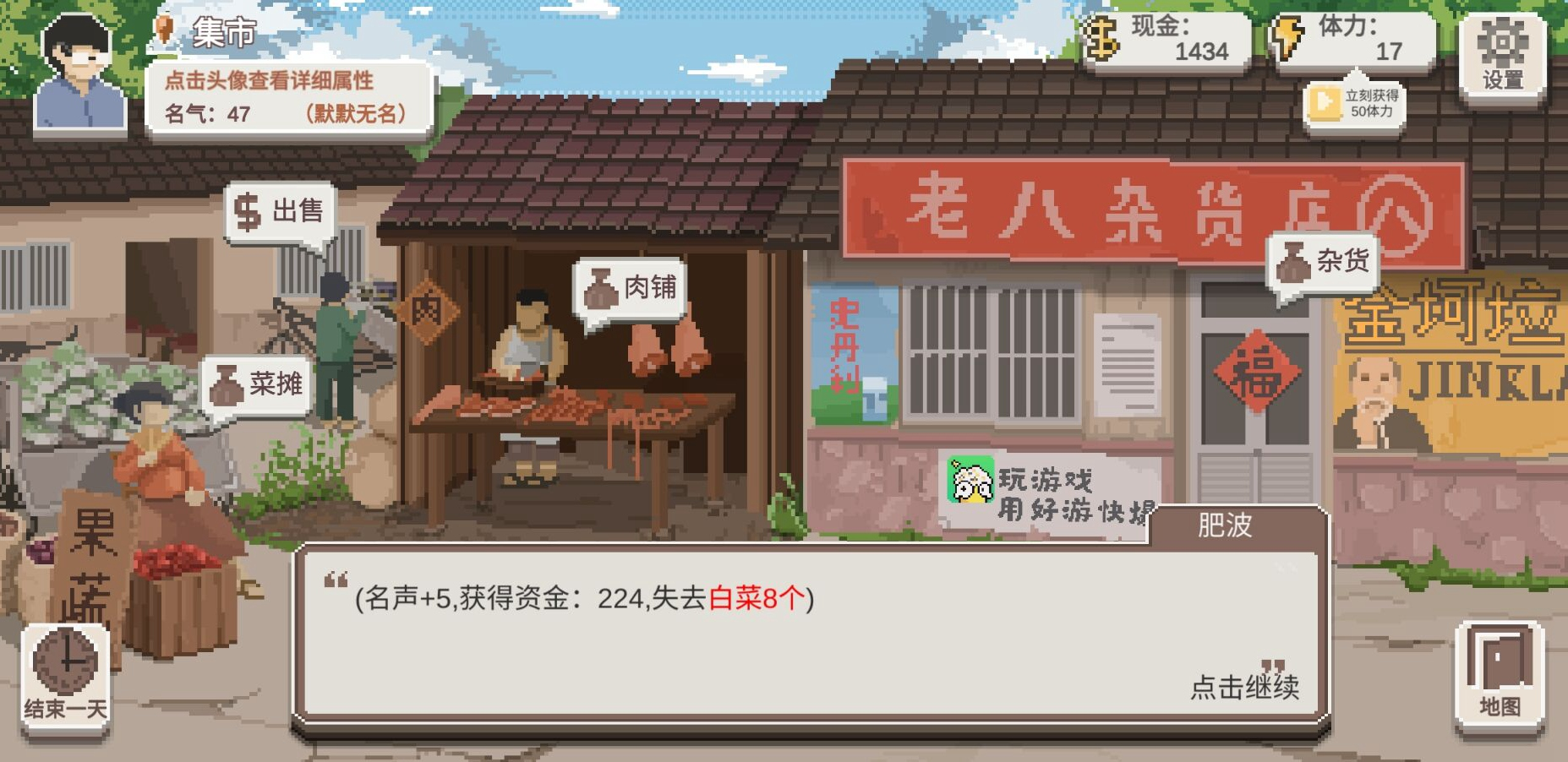 集市的主要任务就是肥波需要找点蔬菜,比如8个白菜、4~6个土豆等,奖励为丰厚的金额回报以及名气