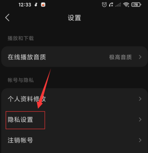 2、点击进入隐私设置。