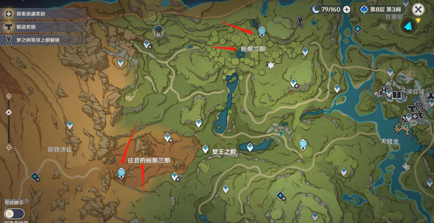 4、在进行森林书系列任务的第二章时就会进入第一个隐藏区域-桓那兰那,点亮桓那兰那的神像后就可以解锁这个地区,接着完成第四章后就可以解锁往昔的桓那兰那地区的神像,将神像点亮后就可以解锁往昔的桓那兰那,这样须弥两个隐藏区域就可以全部解锁了。