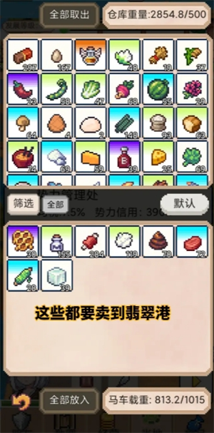 注意:包包里不卖的东西要点开选择 收藏 按钮,或者存在仓库,不然会被卖掉。