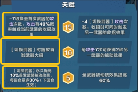持剑首发,战斗中攻击9次可触发收招效果,并切换武器。