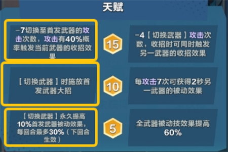 持枪首发,战斗中攻击9次可触发收招效果,并切换武器。
