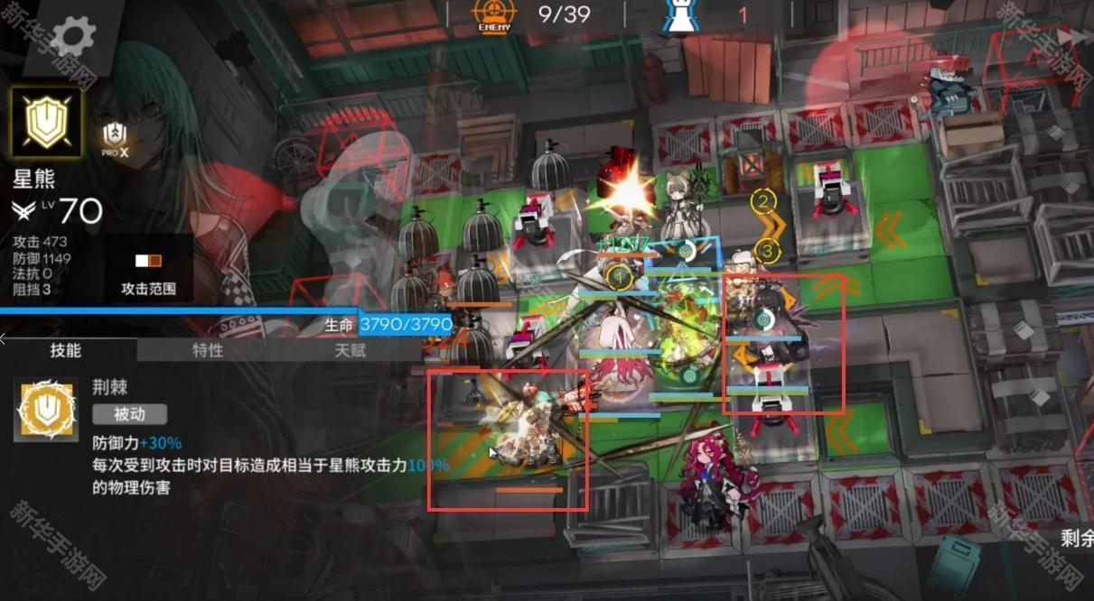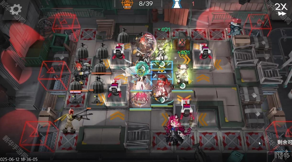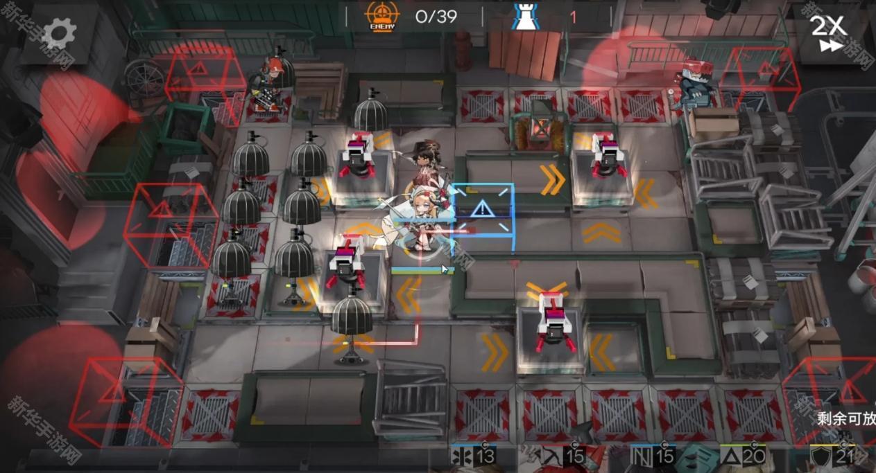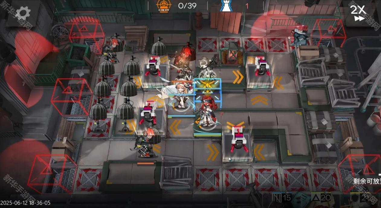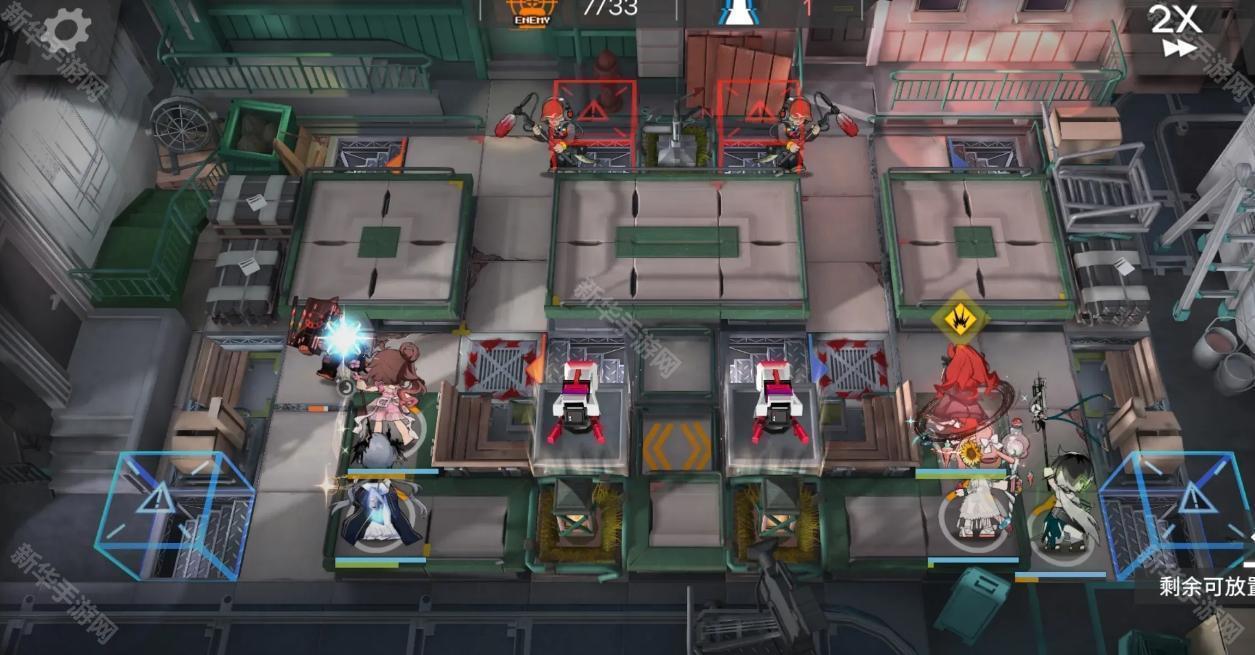 开局星熊直接开灯,工具人拖时间,能天使朝向左,费用足够后部署阿斯卡纶朝向上(如图位)闪灵治疗星熊即可。