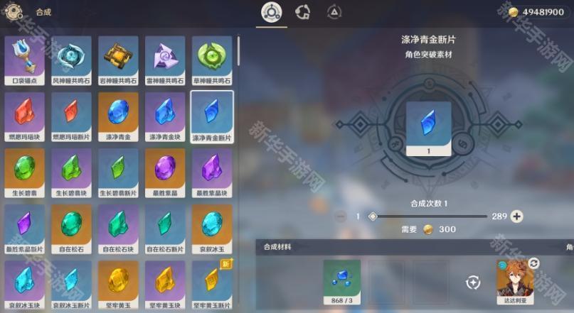 ②在合成台通过消耗一定的材料合成获得