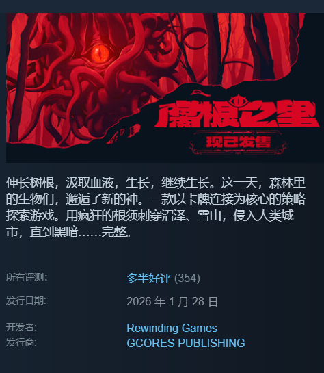 综上,《腐根之里》已于1月28日全平台上线,凭借独特的克苏鲁叙事、深度策略卡牌机制及沉浸式生态演进系统,为偏好慢节奏思考与长期规划的玩家提供了兼具艺术性与挑战性的全新体验。目前游戏已开放下载,欢迎前往Steam平台了解详情并启动旅程。