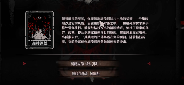 游戏中两大核心资源为“血液”与“水分”。血液主要来源于与非NPC角色(如异兽、畸变体等)建立连接并完成献祭,是解锁新卡牌、提升能力等级的核心物资;水分则仅能通过探索地图中分布的泉眼获取,属于不可再生型战略资源。尤其在第三章与第四章阶段,水分消耗量显著上升,因此前期合理规划采集节奏尤为关键。在收集过程中,还会逐步触发多位NPC的命运支线,形成多线交织的角色关系网。