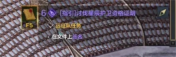 4、完成签名后再次与NPC扎佩尔斯对话即可完成任务讨伐星辰护卫资格证明并解锁星辰护卫玩法;