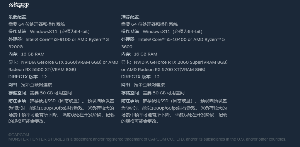 《怪物猎人物语3》作为系列全新续作,将于今年3月13日正式发售,部分平台支持3月11日提前预载。随着上线日期临近,大量玩家开始关注本作的PC端运行配置需求。本作采用3D二次元美术风格,融合回合制策略战斗与开放世界探索,场景建模精细、怪物动作丰富、光影表现细腻,对硬件性能提出了一定要求,尤其在高画质模式下是否会出现帧率波动,成为玩家普遍关心的问题。以下信息综合整理自Steam官方预购页面及技术实测反馈,供参考。