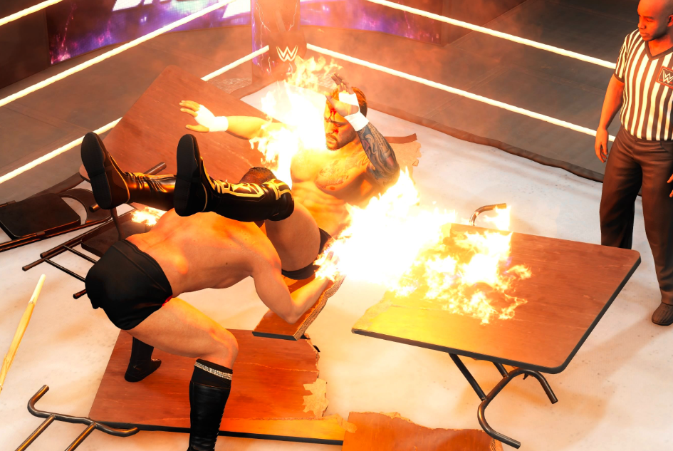 纪录片模式作为全新内容单元,严格复刻历史经典赛事——从1990年代“冷石”史蒂夫·奥斯汀的崛起之战,到2010年代AJ·斯泰尔斯的突破性演出,全部基于真实录像资料建模还原。玩家可切换视角,分别操作双方选手完整演绎整场较量,在沉浸式复盘中深化对摔角逻辑、节奏转换与心理博弈的理解。