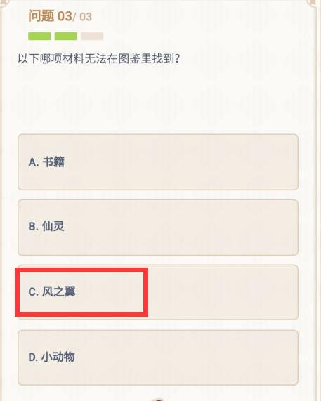 原神中派蒙有一题:以下哪项材料无法在图鉴里找到?经常翻看图鉴的人应该对这道题不陌生,下面给大家带来原神正确答案,一起看吧。