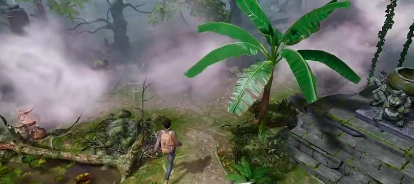 抵达蛇沼鬼城初始点后,场景被浓雾覆盖。玩家需攀上右侧芭蕉树后的石阶,点燃主灯座以清除视野障碍。随后沿显形小径向北推进,途中可踢碎泥缸获取基础补给;继续前行将触发“林中幻梦”特殊事件,位于白色帐篷处,属必经剧情节点。