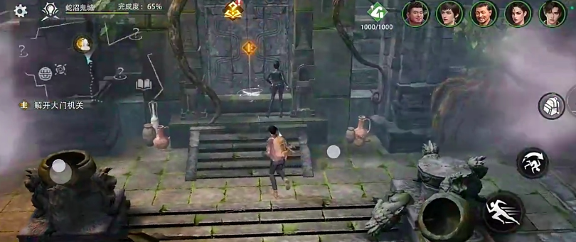 进入神殿需完成前置三重试炼:风蚀渡、雨林遗迹与峡谷裂缝。通关后,角色将被传送至西王母国核心区域——蛇沼鬼城。推荐编队为吴邪、张起灵、王胖子、阿宁、吴三省五人组合;物资配置需包含常规背包、洛阳铲各1件,恢复剂与解毒剂各5份,以及寻龙尺10个,确保探索容错率与持续作战能力。