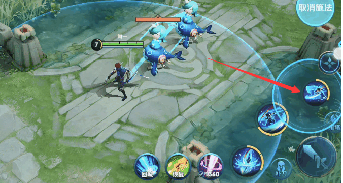 控制方法:在使用大招的过程中,大家可以通过点击大招的图标,并在技能指示器的范围中,选择自己所需要位移的目标方向,点击即可扔出匕首并完成整个施法动画效果。