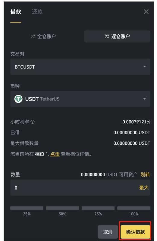 6. 在借代窗口选定币种与数量,最终确认借款请求。