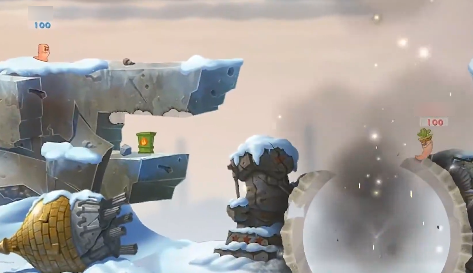 玩法层面延续了系列标志性“地形破坏+武器策略”双核机制。闯关模式中预设多张差异化地图,每张地图均嵌入动态机关与环境陷阱系统,例如可引爆的油桶、定时坍塌的岩壁、随机触发的电磁干扰区等。玩家需结合地形变化预判落点、计算弹道,并为己方虫族配置对应武器组合,包括但不限于香蕉炸弹、臭气弹、火箭筒及远程狙击枪等经典载具。