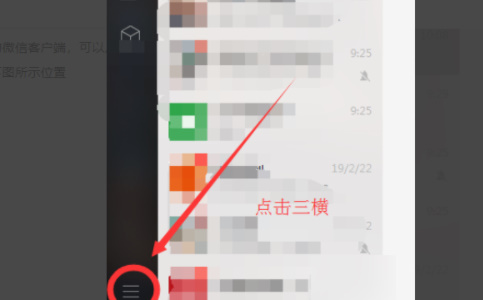 登录微信客户端后,点击界面右下角菜单图标进入设置面板。
