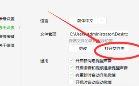 在通用设置选项中,通过文件管理功能可快速定位接收文件的存储目录。