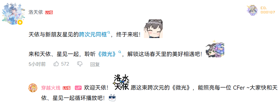 CFM首款真人互动影游主题曲《微光》,由虚拟歌手@洛天依 与 CFM 全新女团「HYPER SHOT」首位成员星见破次元联袂演绎。快来一起收听吧~