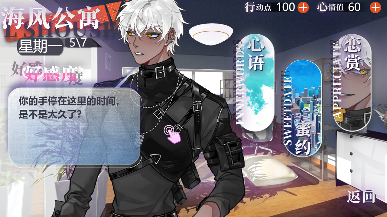 游戏中设有数位性格迥异的可攻略男性角色,通过对话选项、线索收集、机关破解及日常互动等方式逐步提升亲密度,进而解锁专属剧情片段、隐藏对白与高沉浸触感反馈。立绘系统特别加入动态触摸响应机制,增强情感代入与操作真实感。