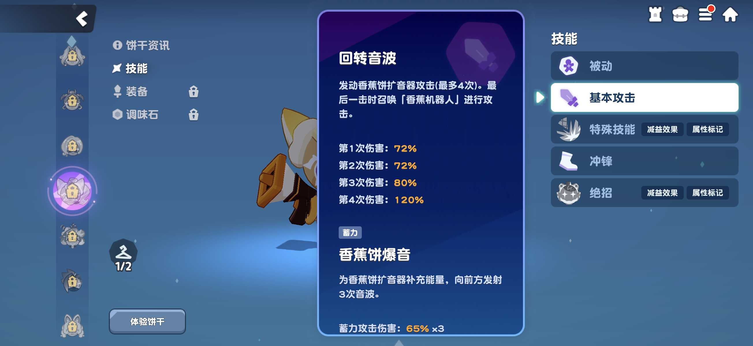 在《饼干人联盟》这款策略卡牌游戏中,角色搭配与技能协同是决定战斗胜负的关键要素。香蕉煎饼饼干作为全服稀有度为“超级稀有”的核心输出型单位,凭借其独特的机器人协同机制,在当前版本中展现出极强的战术适配性。本文将围绕该角色的定位、技能逻辑、实战价值及培养方向进行系统解析,帮助玩家更高效地构建高胜率阵容。