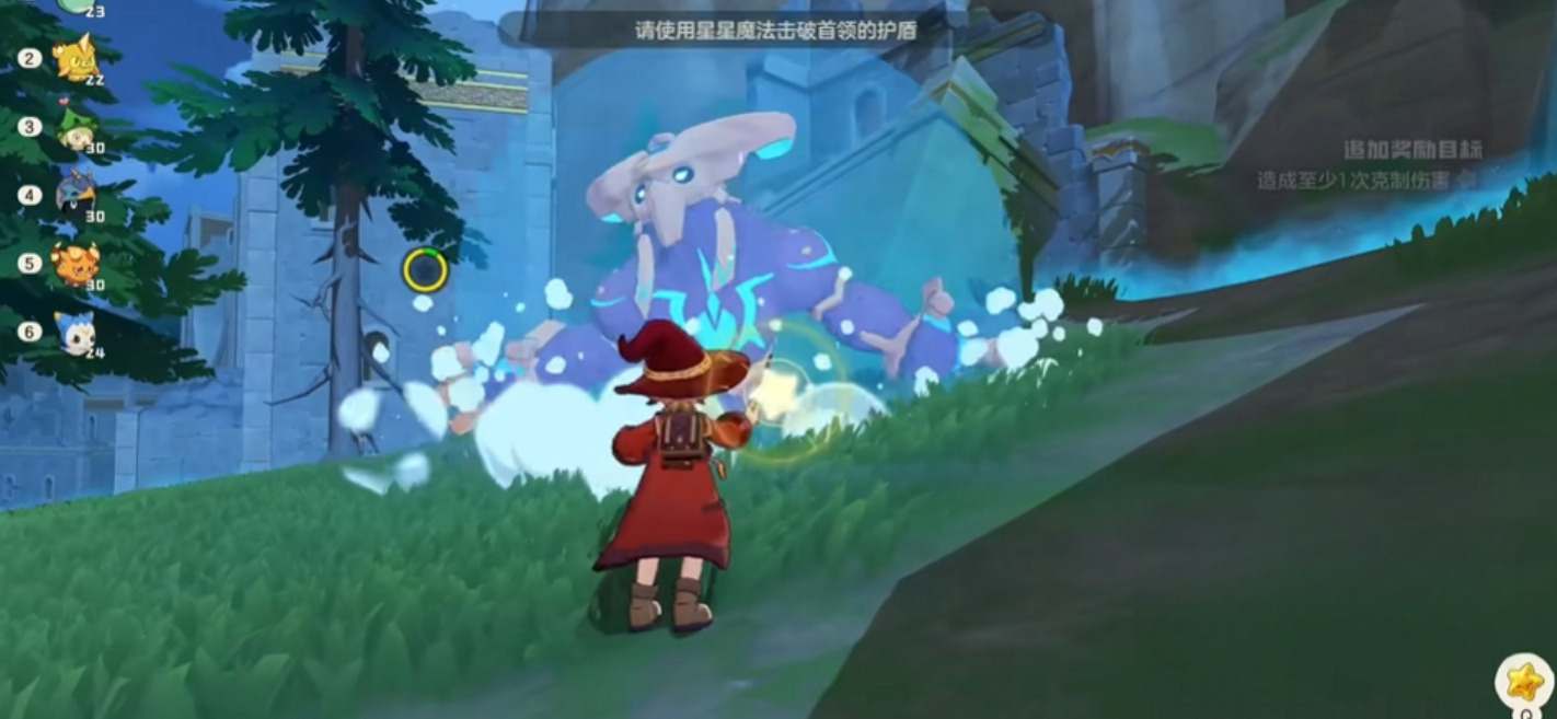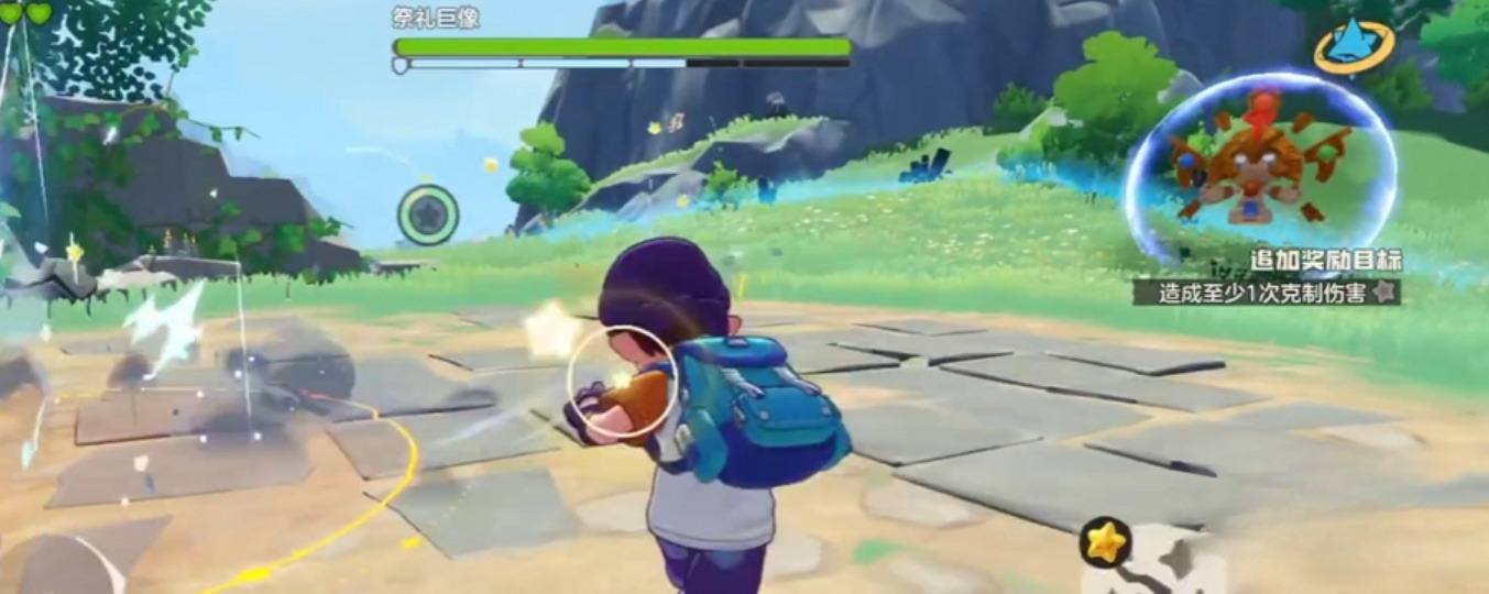 祭礼巨像的首阶段攻击以地面尖刺突袭为主,会在玩家脚下瞬发一排竖刺,建议全程保持中远距离输出以规避风险;同时释放追踪光波,配合地面红色预警区提示,需及时横向闪避。第二阶段环境激活双属性地形机制,地面呈现两种不同元素属性;此时携带属性相克的精灵参战,将显著提升破防效率与整体输出稳定性。
