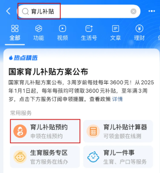 打开支付宝搜索【育儿补贴】关键词