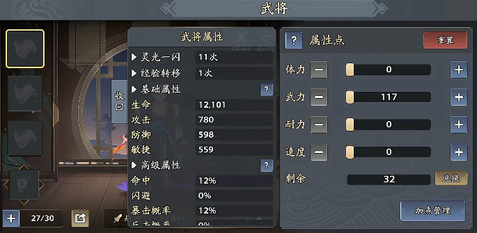 属性加点需结合武将职能精准分配。体力加点同步提升生命上限、防御力与敏捷值,适用于生存向角色;武力加点则侧重攻击强度与生命成长,是主力输出武将的首选方案;耐力加点兼顾防御与生命,适合副坦或半肉战士;速度加点虽常被忽视,但实际能联动提升敏捷、攻击与生命三项基础属性,对先手控制、连击频率及生存容错均有显著影响,尤其在竞技场与跨服战场中价值突出。
