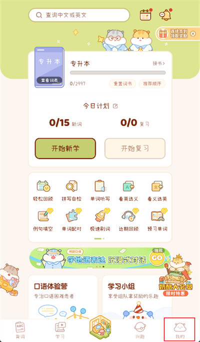 1、打开奶酪单词软件,进入软件后点击界面右下角【我的】。
