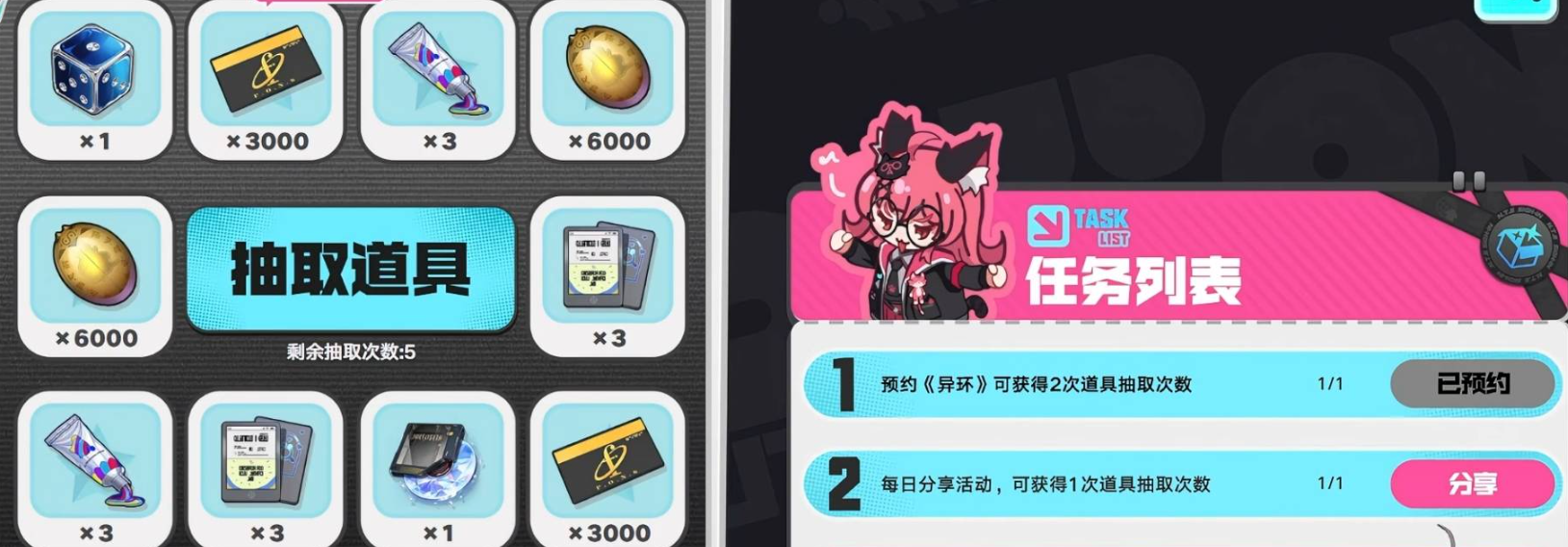 参与方式十分便捷:只需完成预抽卡系统内设置的一系列轻量级任务,即可持续累积免费抽卡次数。当抽卡次数达到上限后,可将奖池中全部道具抽取完毕,并从中自主挑选6件带入公测环境,实现高度个性化的开局配置。