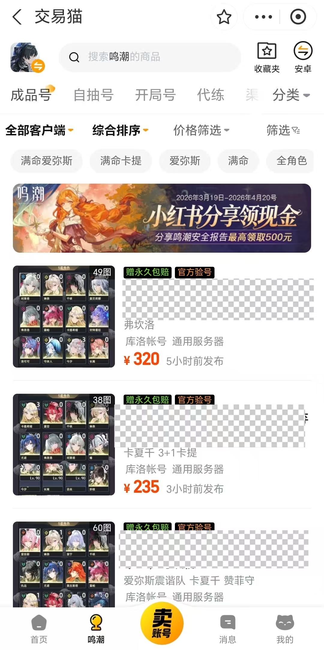 安卓用户可通过官方渠道获取安装包,iOS用户可访问官网完成注册与登录。平台内设有专属《鸣潮》账号交易专区,提供开局号(含初始SSR角色与基础资源)、自抽号(保留完整抽卡记录及未拆礼包)、成品号(满命主C+全图鉴+高练度配队)等多种类型,支持按等级、命座、武器、圣遗物词条等多维度筛选,大幅缩短选购时间。