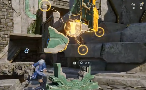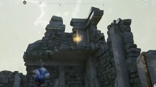 第二处设于坍塌废墟区,现场散落三块残碑构件。使用角色1号感知技能或直接点击“调查”指令,即可高亮显示其精确方位;借助钩索飞至高台后,正对方向跃下即可定位第二块碑体所在平台。