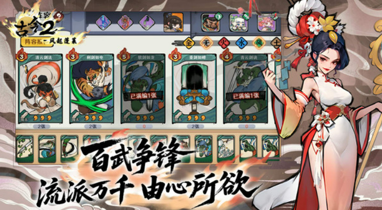 卡牌体系涵盖内功、轻功、招式、心法四大武学门类,总量逾三百张。每张卡牌具备独立能量消耗模型与施放条件,例如“太极云手”需前置两回合蓄势,“寒梅落雪剑”则依赖特定武器协同触发连击。玩家需根据武器特性重构整套出牌节奏——使用长枪时侧重突进压制,切换折扇后则转向控制链与状态叠加。不同流派间存在显著操作反馈差异,刚柔并济型强调资源循环稳定性,快剑流考验瞬时决策精度,奇门术路线则依赖环境变量与随机事件联动。