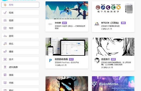 2. 登录成功后,用户可以浏览不同领域的优秀创作者及其作品。